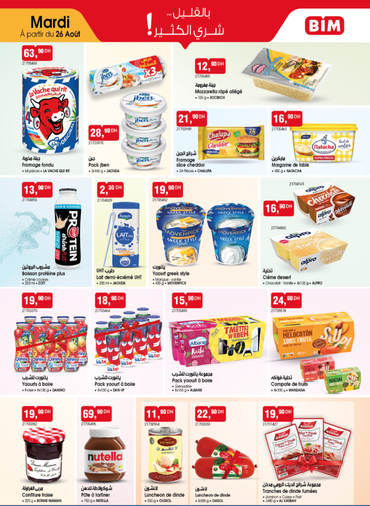 Voici la liste des produits qui t’attendent le mardi, dans le Catalogue du 26 Août 2025, dans les magasins BIM, dans les magasins BIM, partout au Maroc. Il y en a plusieurs !