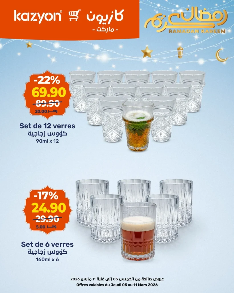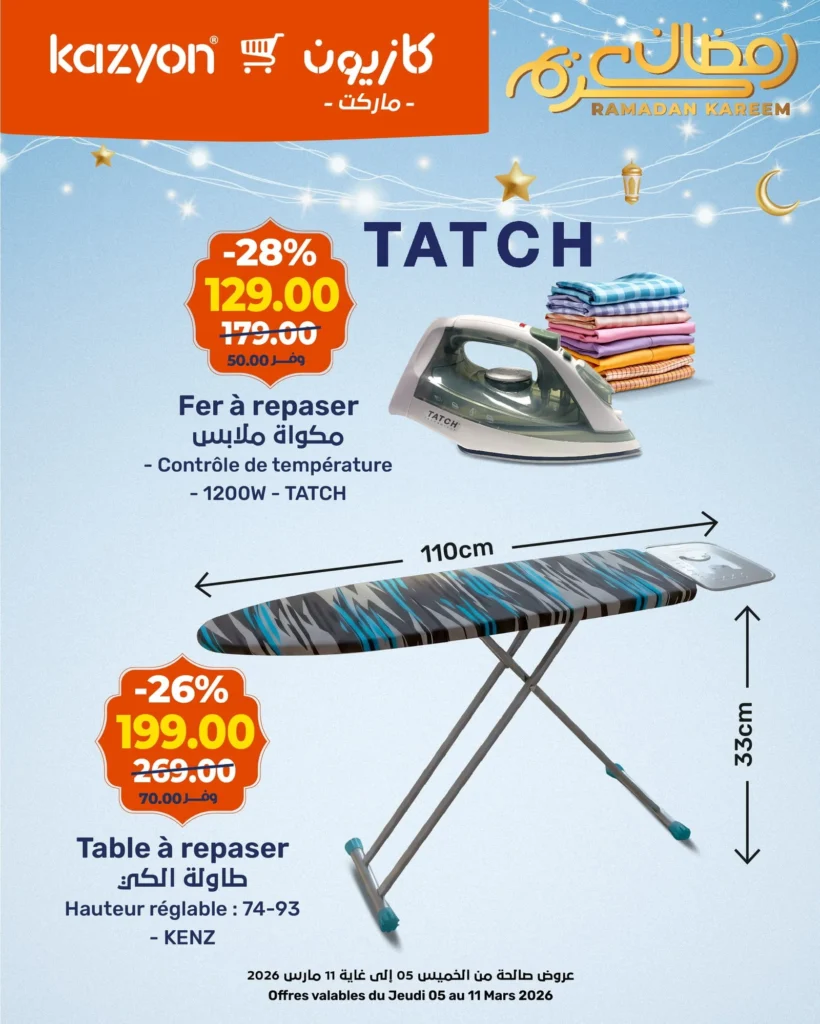 Offres valables du 5 au 11 mars 2026 dans les magasins Kazyon Maroc, selon disponibilité.