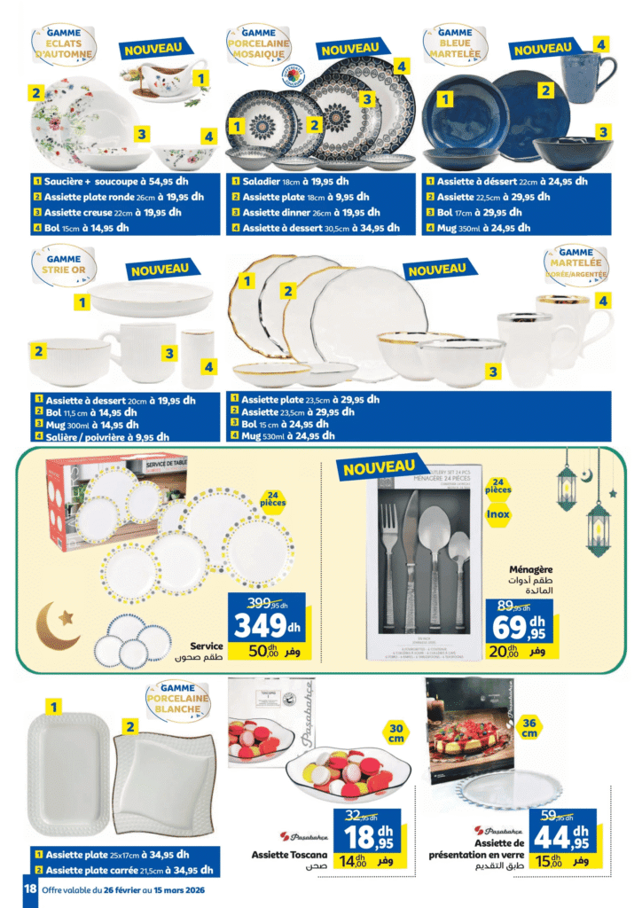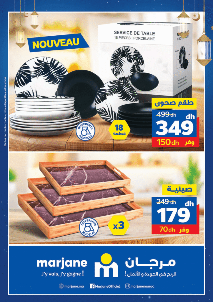 - Service de table 18 pièces : 349 dh (économie 150 dh)