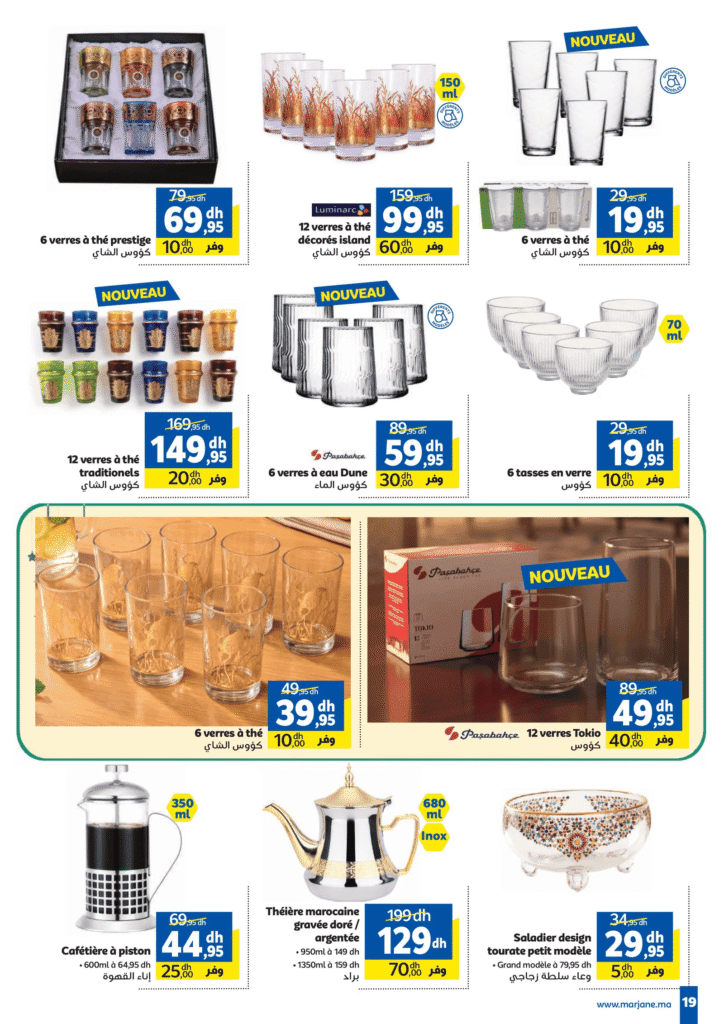 - Verres à thé : à partir de 19,95 dh