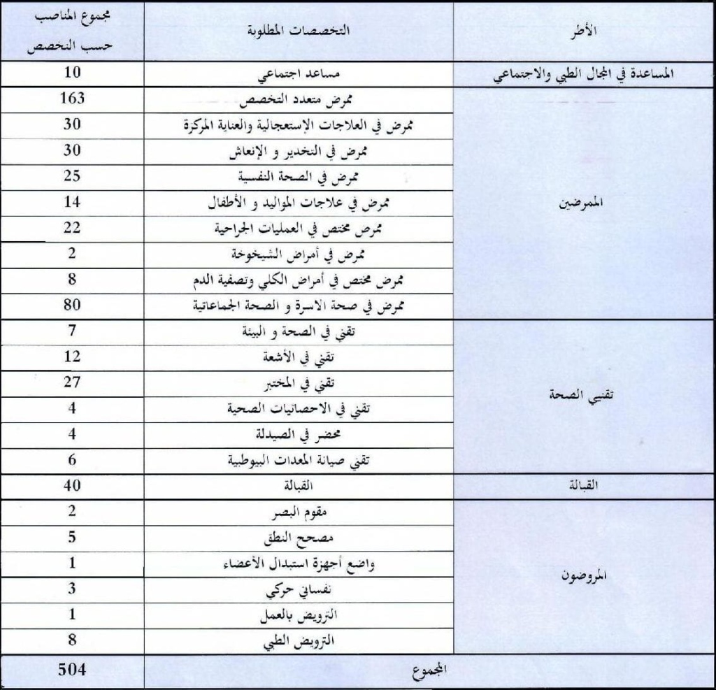 Le nombre total de postes mis au concours est de 504, répartis selon les spécialités mentionnées dans le tableau officiel annexé à l’annonce. Il est réservé:
